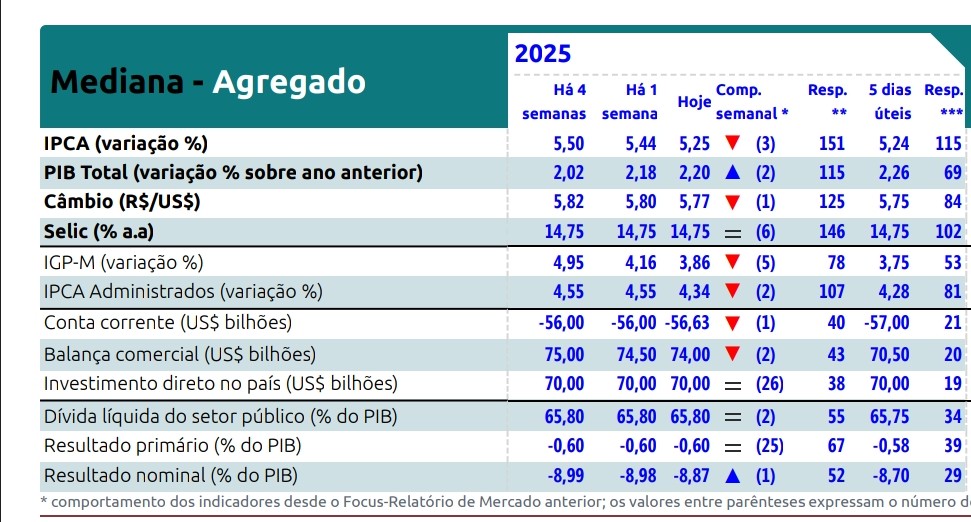Fonte: Relatório Focus do Banco Central, publicado em 13 de junho de 2025.